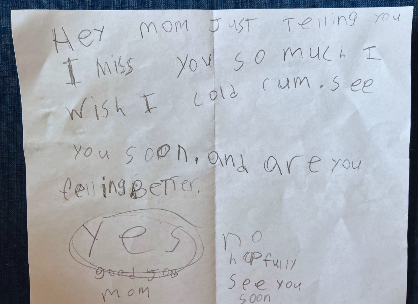 In the days to come, my mom will leave and this will be both necessary and hard. We will be changed. I will continue to marvel at the love notes and food and gifts that arrive, the kindness and care of neighbors and friends.
