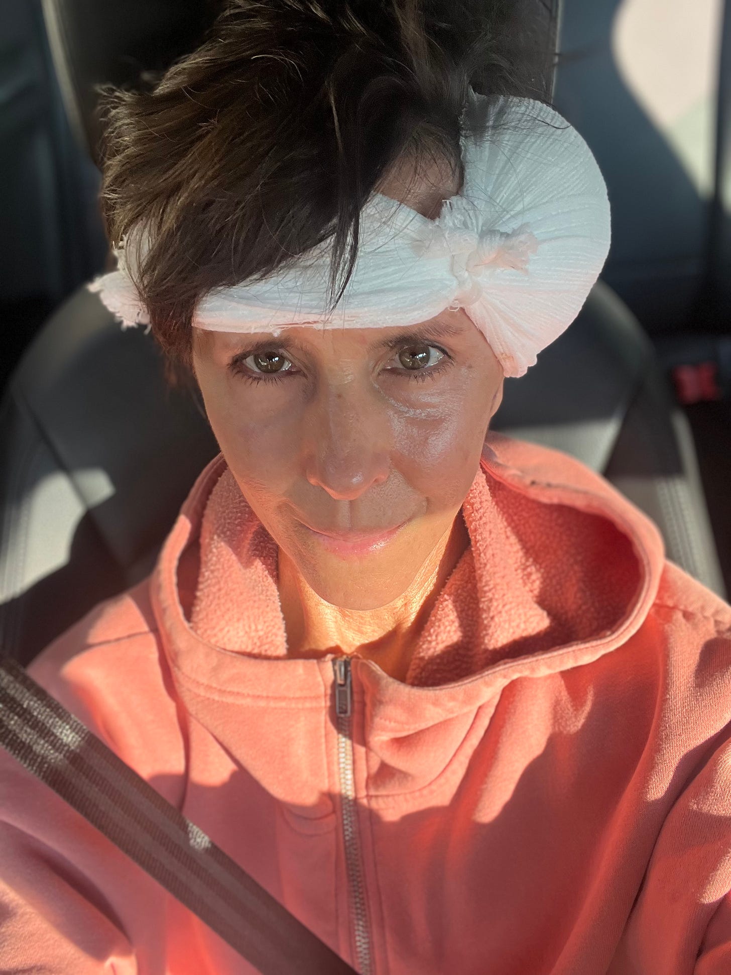 My husband has been abruptly left in the waiting room but I’m told he will come back before I go to the operating room. I text him, let’s not cry. But as soon as the most official of the nurses comes to talk to me, one who will be part of the surgery itself, I’m choking on ugly tears. I remind myself that tears release cortisol and that this is not just ok but good, productive. This is my body wisely taking care of itself. But still, I am desperate to pull it together. I make the mistake of snapping a selfie.